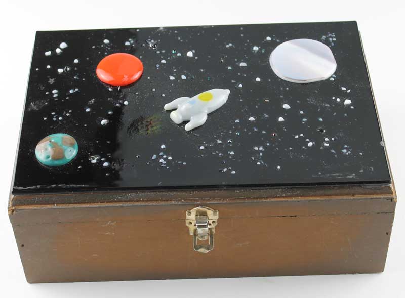 For a while, I worked to make items that were decorative but also useful, not just “dust catchers”. I still make these from time to time, along with pictures on recycled boxes, but I’m moving more toward wall pieces. Below are some examples of useful items. If you’d like to see more, please contact me at dianectaylor at netscape.net.
