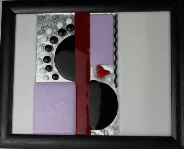 - Abstract No 1, fused glass over shiny silver paper, found frame