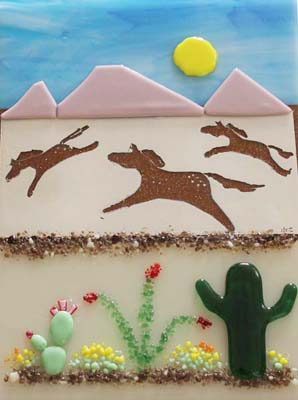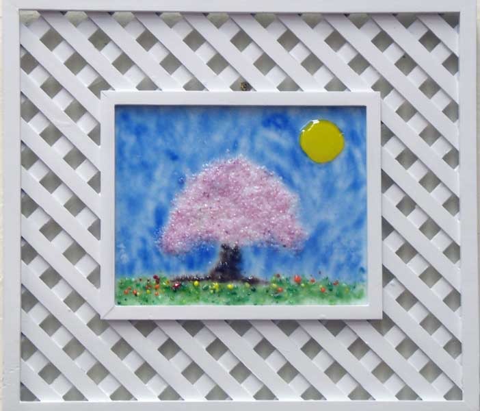- Spring Reverie, fused glass in a special frame, about 18 in wide x 16 in high, 1 inch deep ($150)