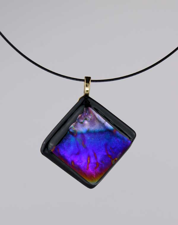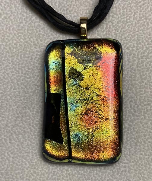 - Almost-Art Deco Heart, dichroic glass, comes with 16″ or 18″ magnetic neck wire, $50
